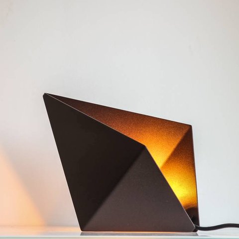 Deze opvallende geometrisch ontworpen tafellamp kan in verschillende posities geplaatst worden om een warme en gezellige sfeer te creëren.